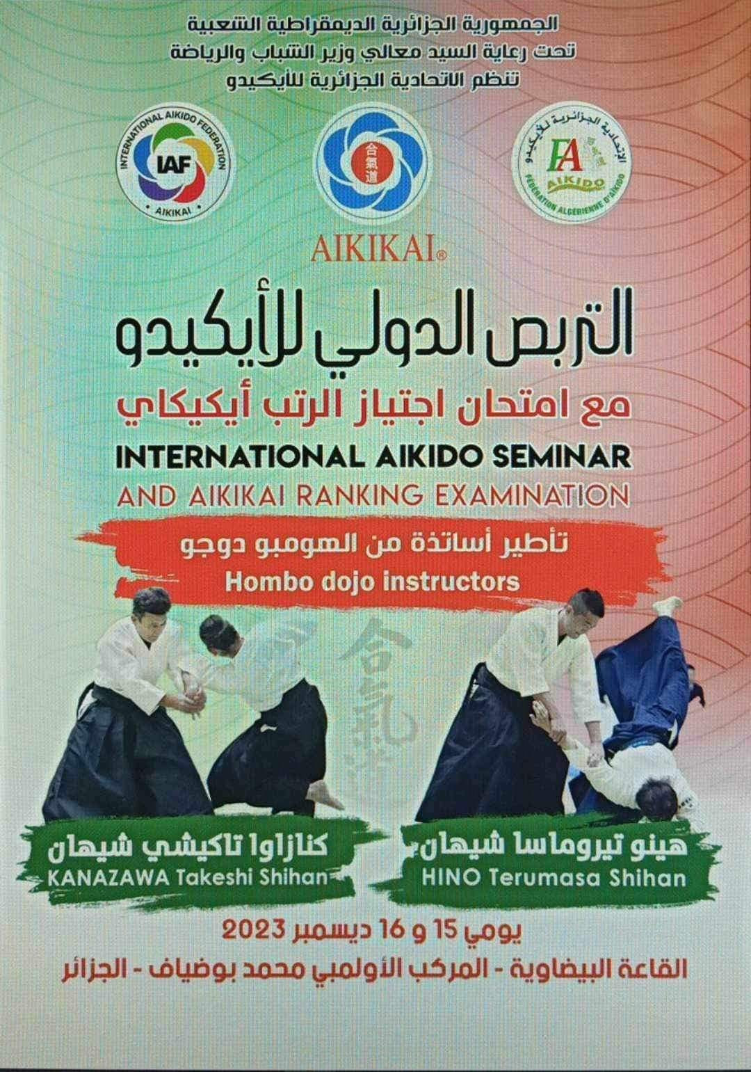مشاركة نادي المنار في التربص الدولي للأيكيدو و إمتحان إجتياز الرتب أيكيكاي بالجزائر من تنظيم الإتحادية الجزائرية للأيكيدو و تحت إراف رئيس الاتحادية الاستلذ رويبح ناصر و و خبراء الهامبو دوجو بحظور رئيس الإتحاد الدولي للأيكيدو ويلكو_فريسمان و رئيس الإ تـحاد العربي باسم_عبد_الله_زارع و إطارات وزارة الشباب و الرياضة يوم15و16ديسمبر2023 بالقاعة البيضوية العاصمة .